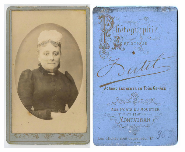 Portrait-carte recto-verso réalisé par J. Dutil, début XXe siècle, 3Fi 165. © Archives départementales de Tarn-et-Garonne.